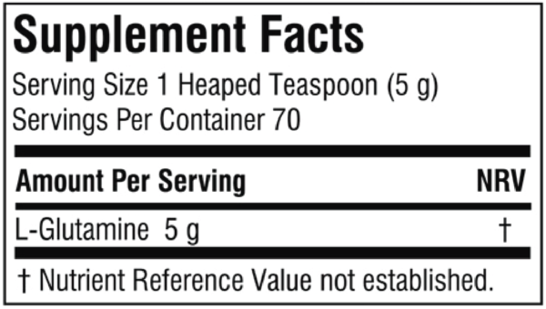- Standard Usage: Add one heaped teaspoon (5g) of Basix Glutamine to water or a beverage of your choice.